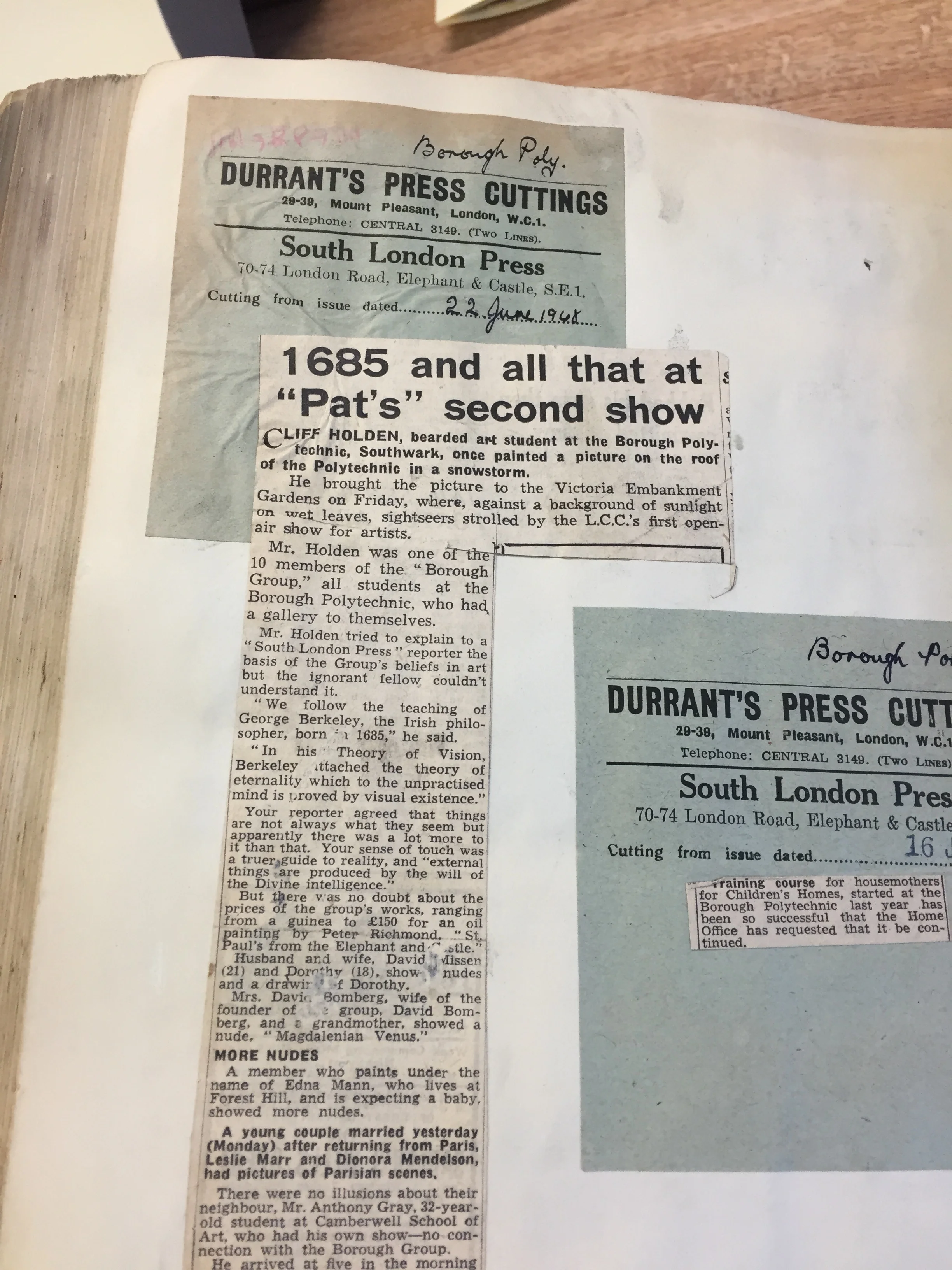 In 1948, members of the Borough Road group exhibited paintings and drawings at an open air exhibition at the Victoria Embankment Gardens. This was covered by the South London Press.